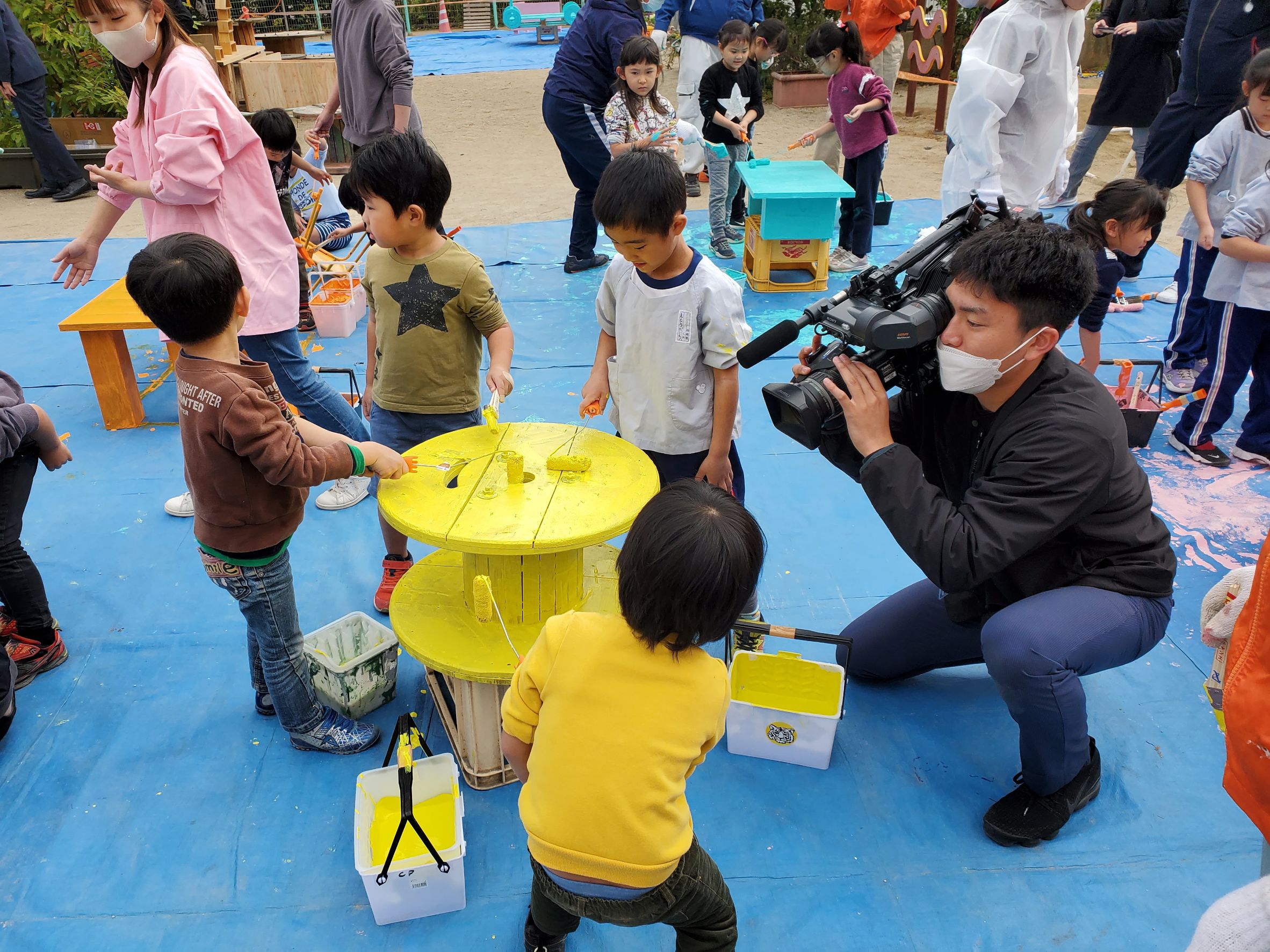 今年はひまわり幼稚園(中島)にて『わくわくアート・ペンキを塗ろう!』を開催。