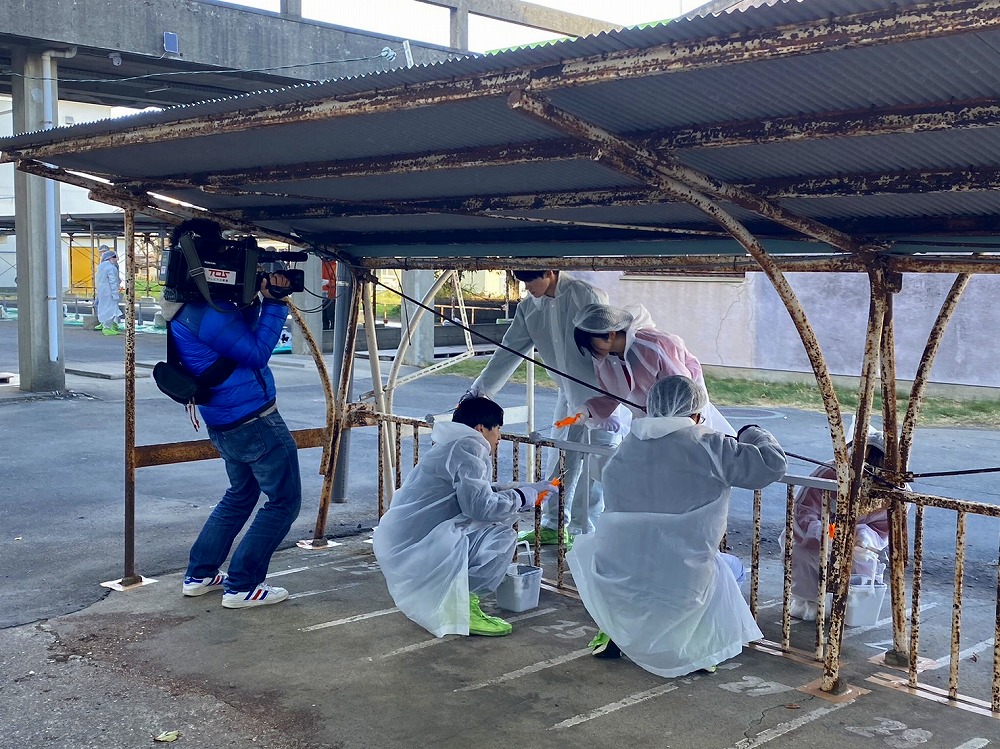 今年は鶴崎工業高校駐輪場の塗替え作業です。