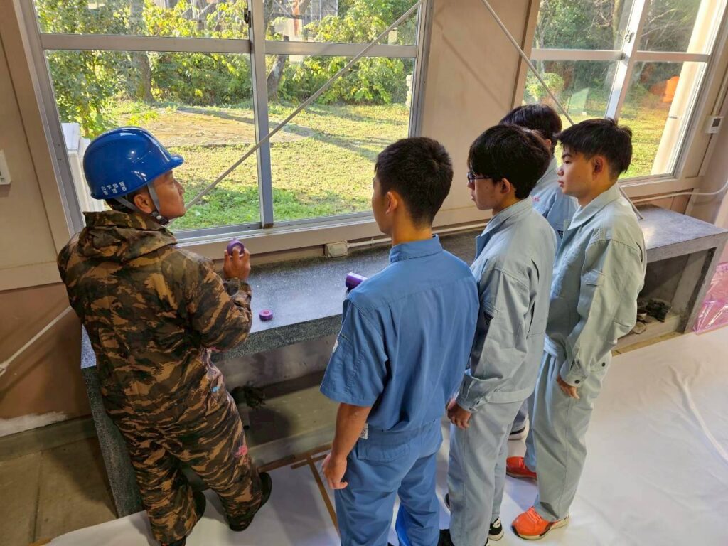 養生作業から下塗り、上塗り、仕上げまでを共に行い、実際の作業を体験してもらうことで、塗装の役割や大分県における外壁塗装・建築塗装の大切さを感じていただけたのではないかと思います。