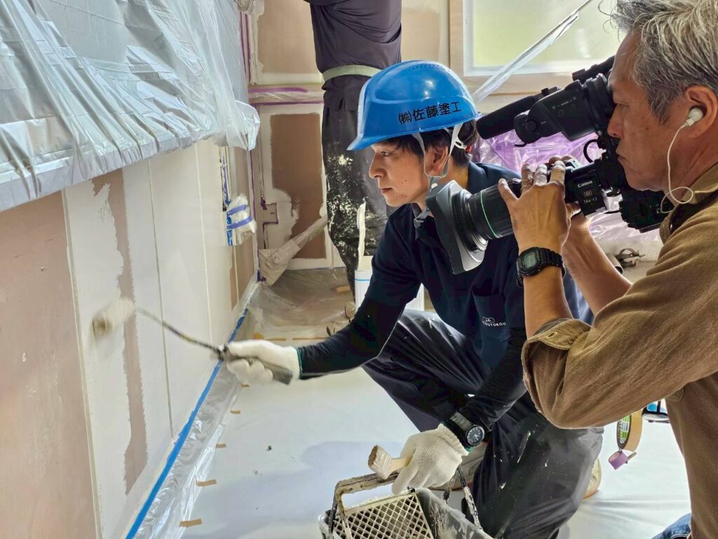 全国塗装競技大会において総合10位に入賞した藤尾翔太も取材を受け、