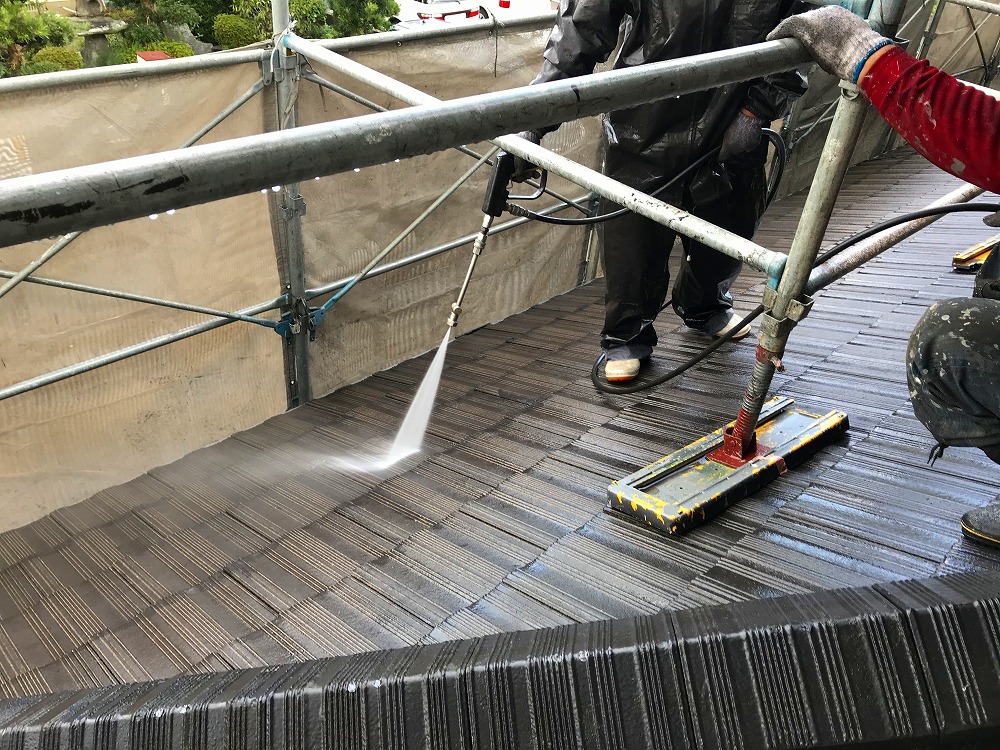 着色スリラーという材料を使うことによりできた「スラリー層」というものがモニエル瓦には出来ており、この層が実は塗料がとてもつきにくく、再塗装する際はこのスラリー層を全て取り除く必要があります。