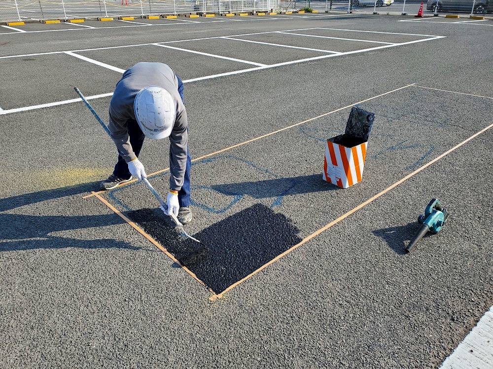 舗装専用塗材にて塗装していますが、どうしてもアスファルト舗装の色とは差が出てしまいます。