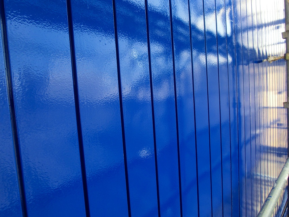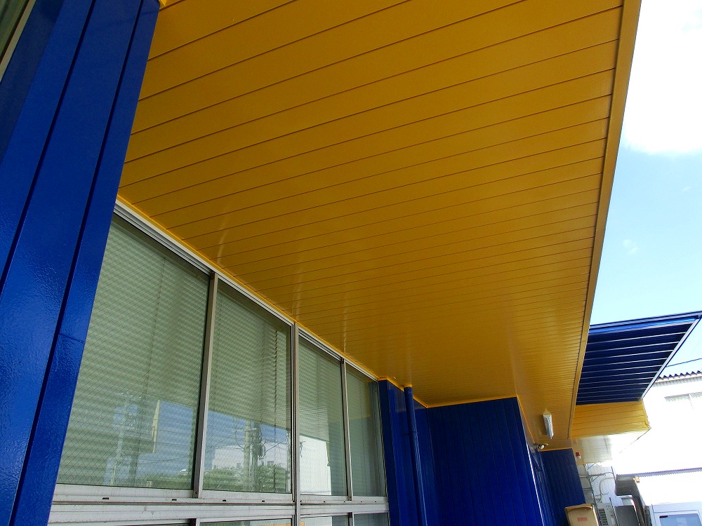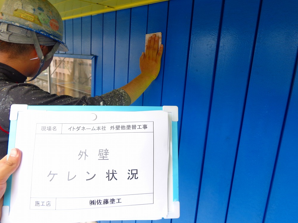 建屋の塗膜剥離やイトダネーム様のロゴマークや文字看板の色褪せなどが起きている状態でしたが、