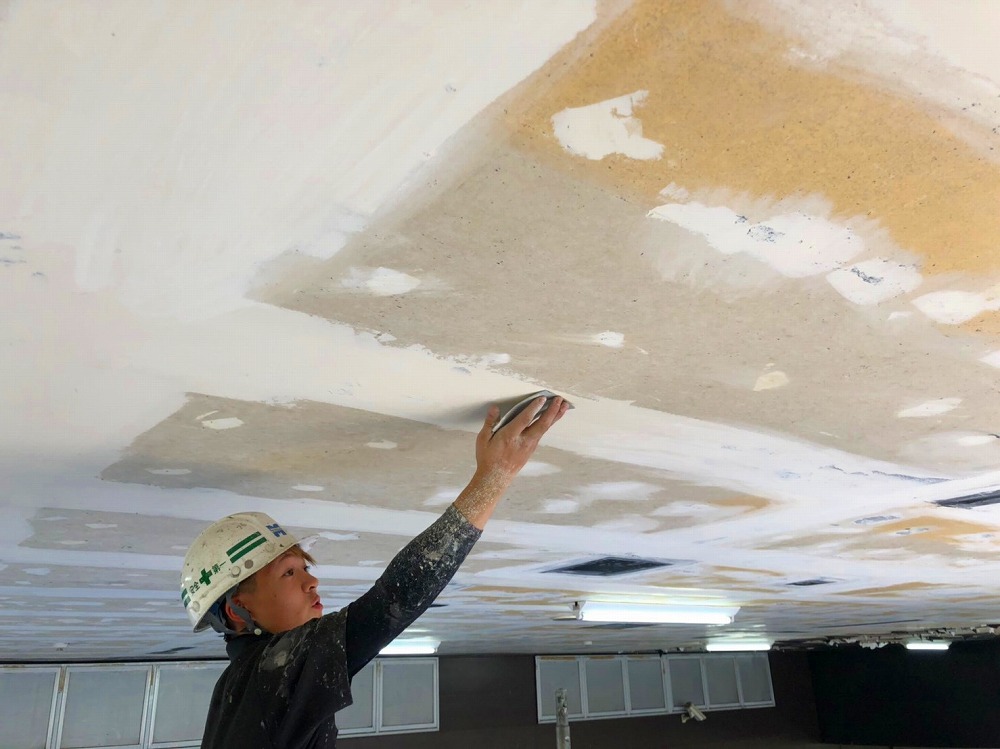 水が回っているのでボードにカビも発生していましたので、防カビ機能をもった塗料を選定し、仕上げました。