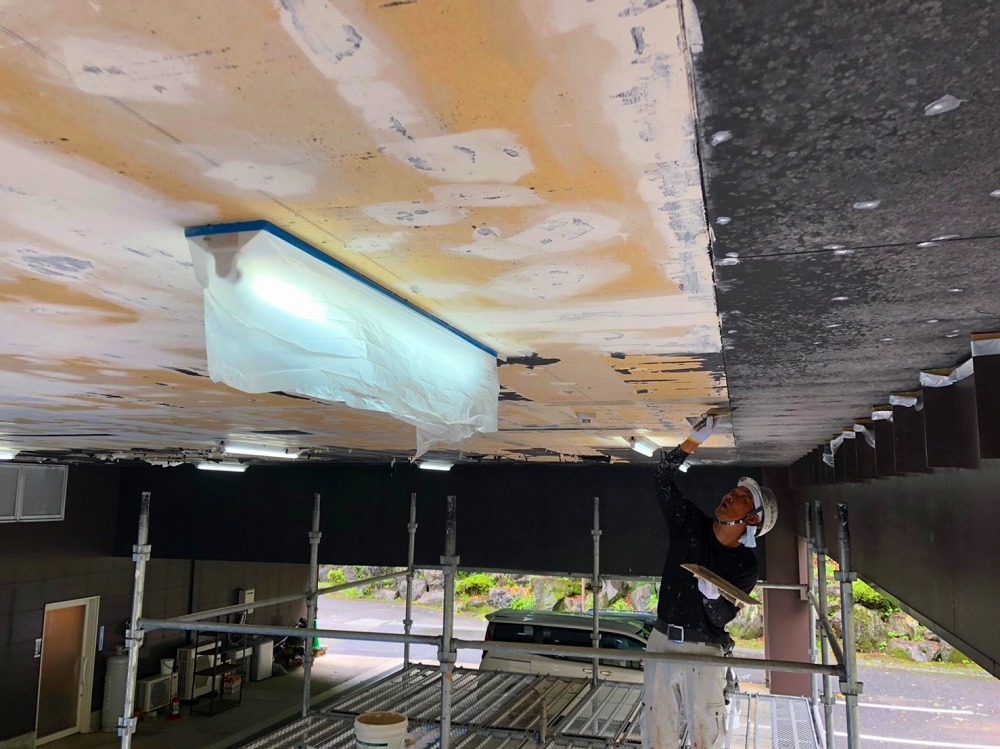 臼杵市二王座にある大の葬祭うすき会館様よりご依頼いただき外部天井塗装、屋上漏水補修工事を行いました。