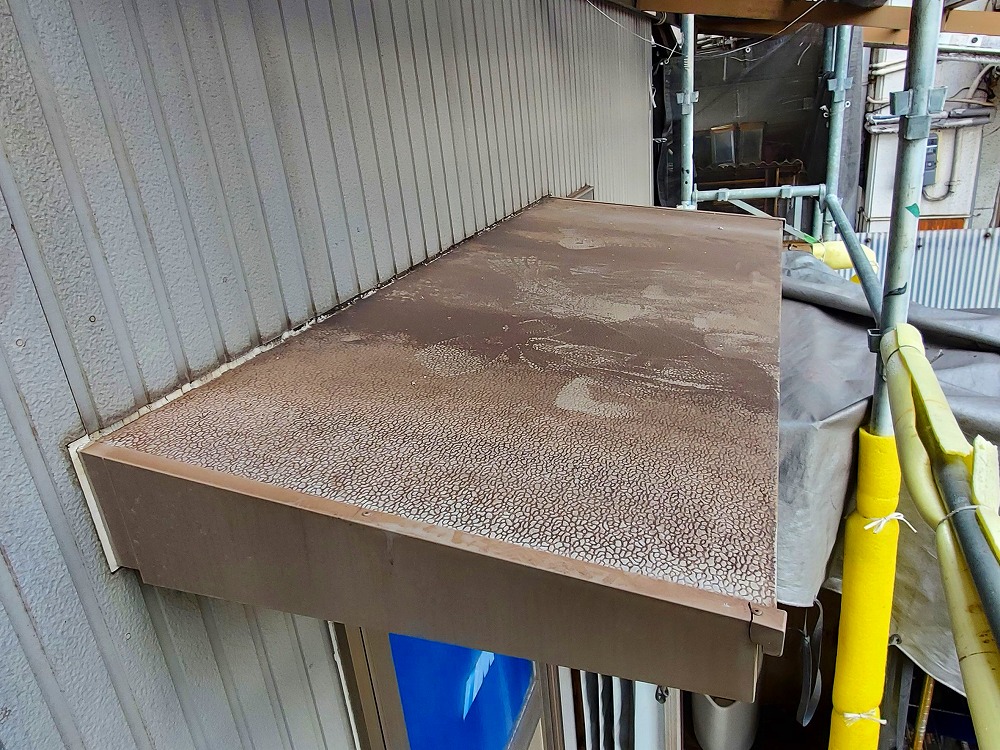 折板屋根・外壁のチョーキング現象やシーリングの劣化、鉄部の色褪せ等が起きている状態でした。