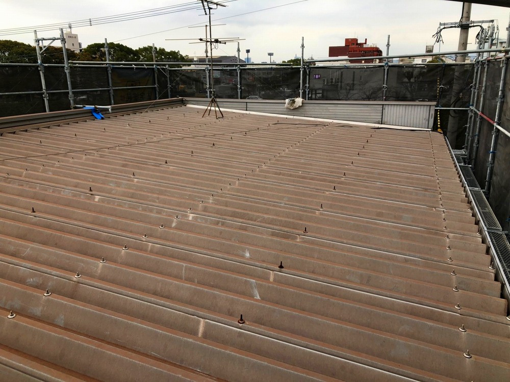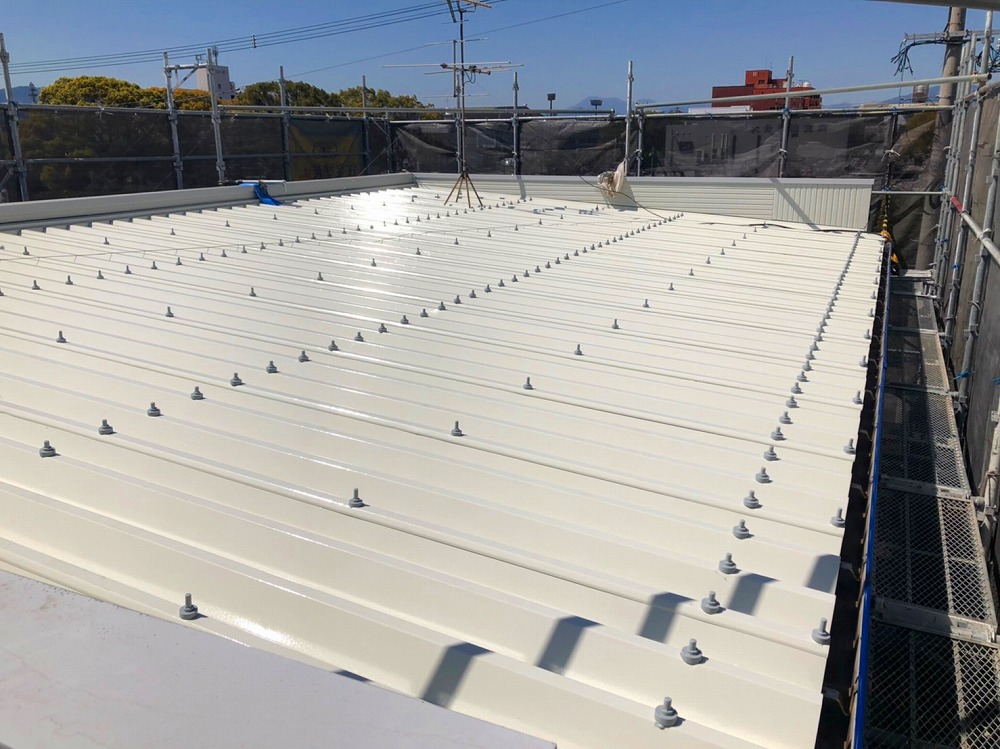 またマイカン様は2階事務所がかなり暑いとお悩みがあり、折板屋根は遮熱塗料を塗らせていただきました!
