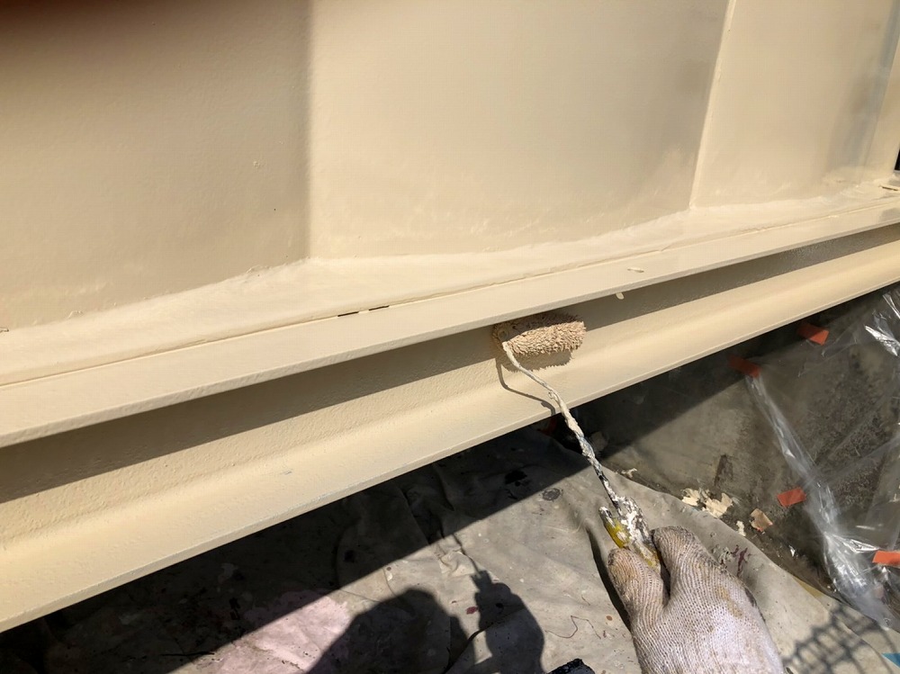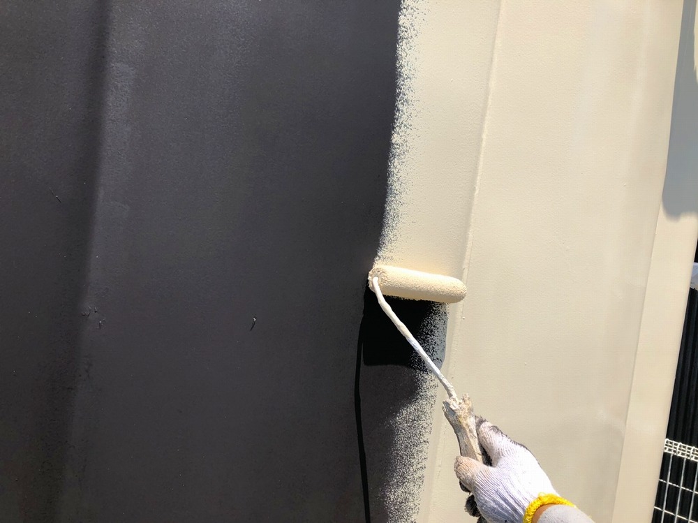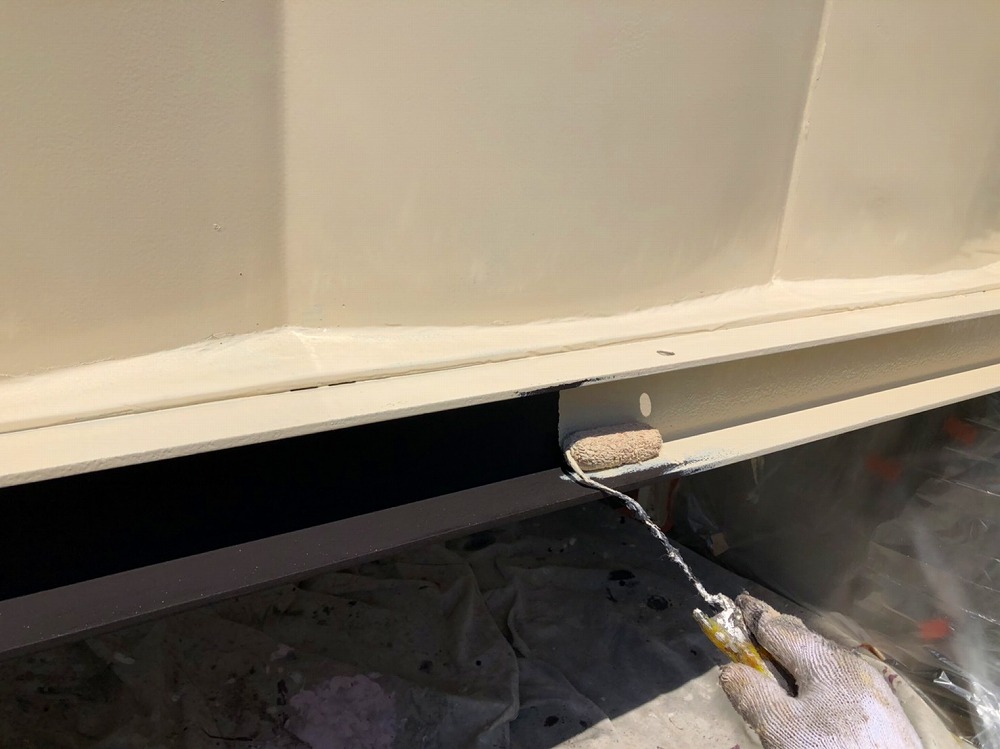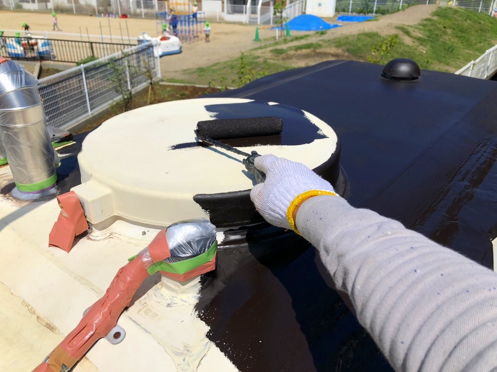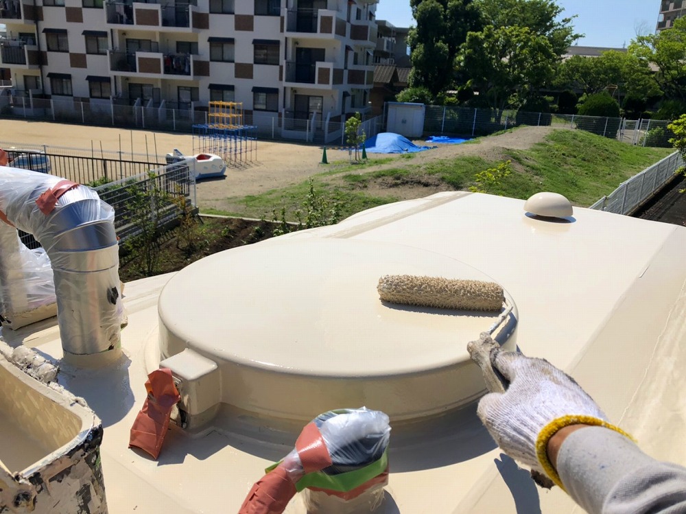 貯水槽はFRP貯水槽専用塗料で施工しており、下塗り(遮光プライマー)が大事な工程となります!