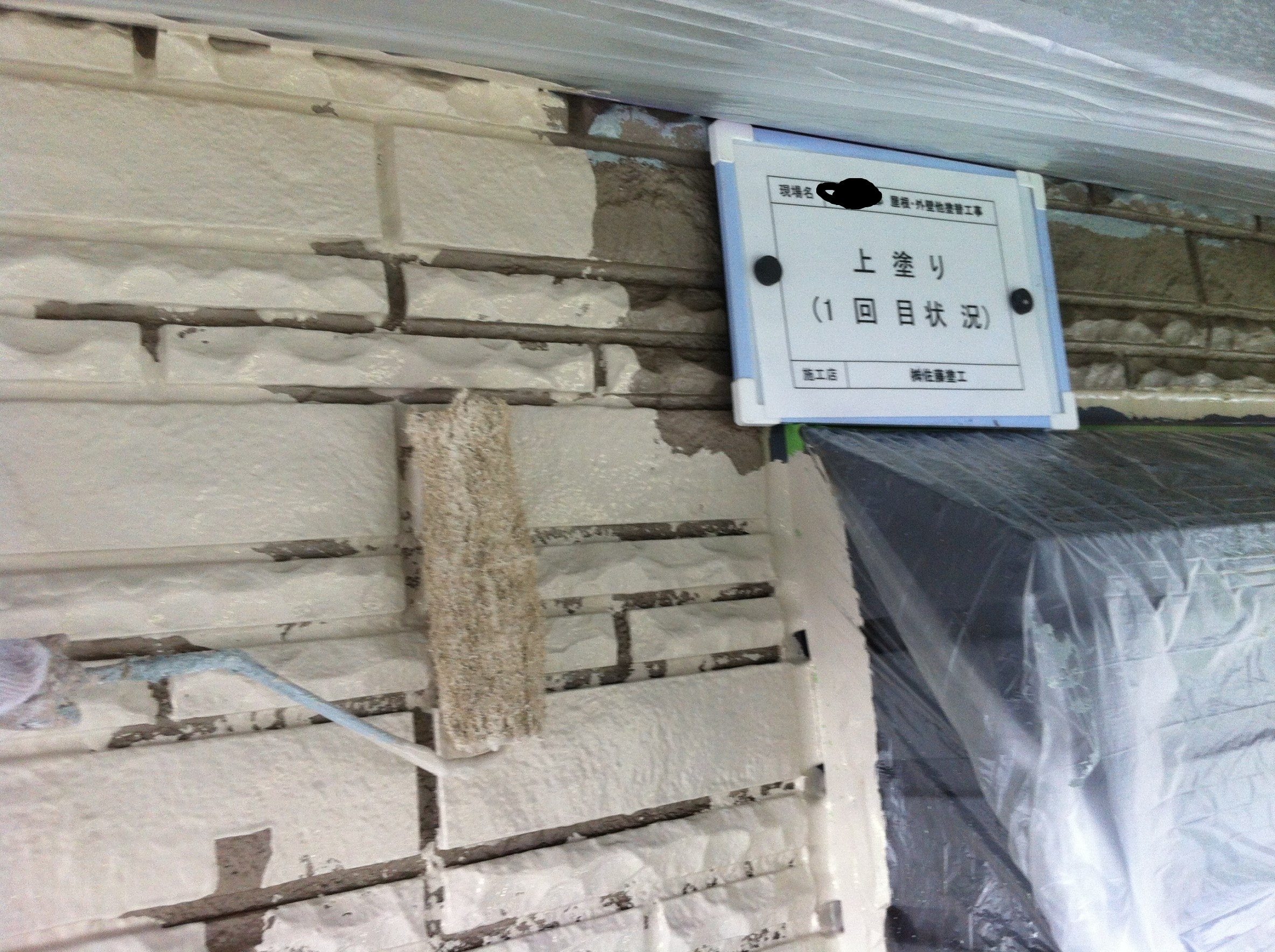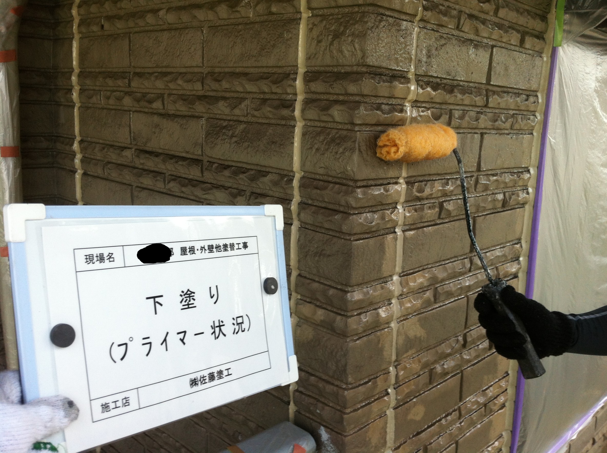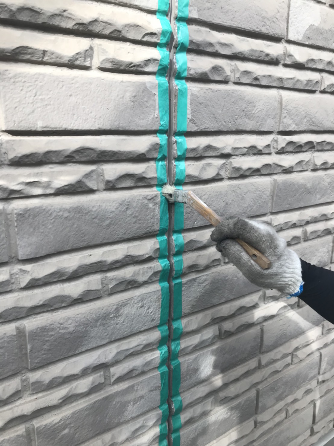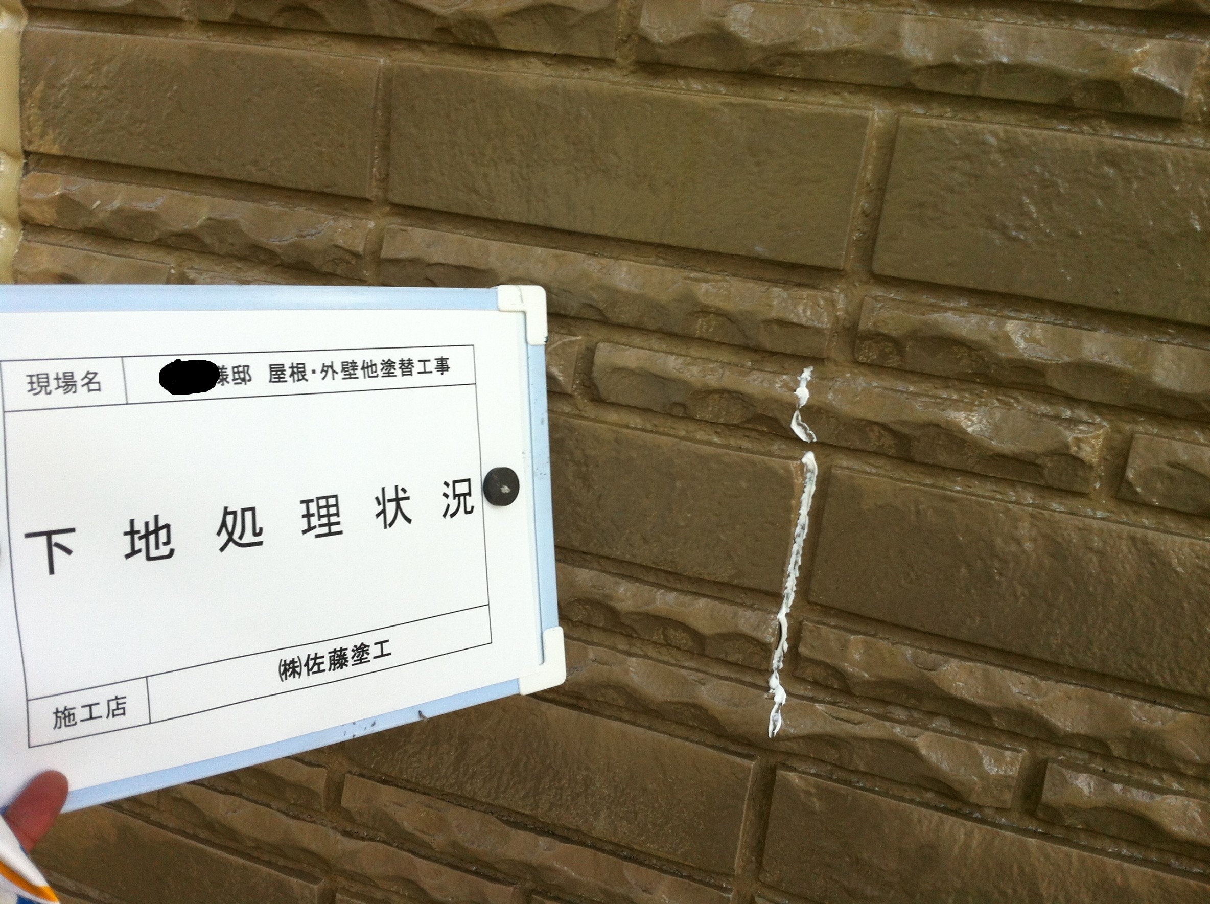 シーリング補修後は、下地処理としてクラックの補修から下塗りを行います。