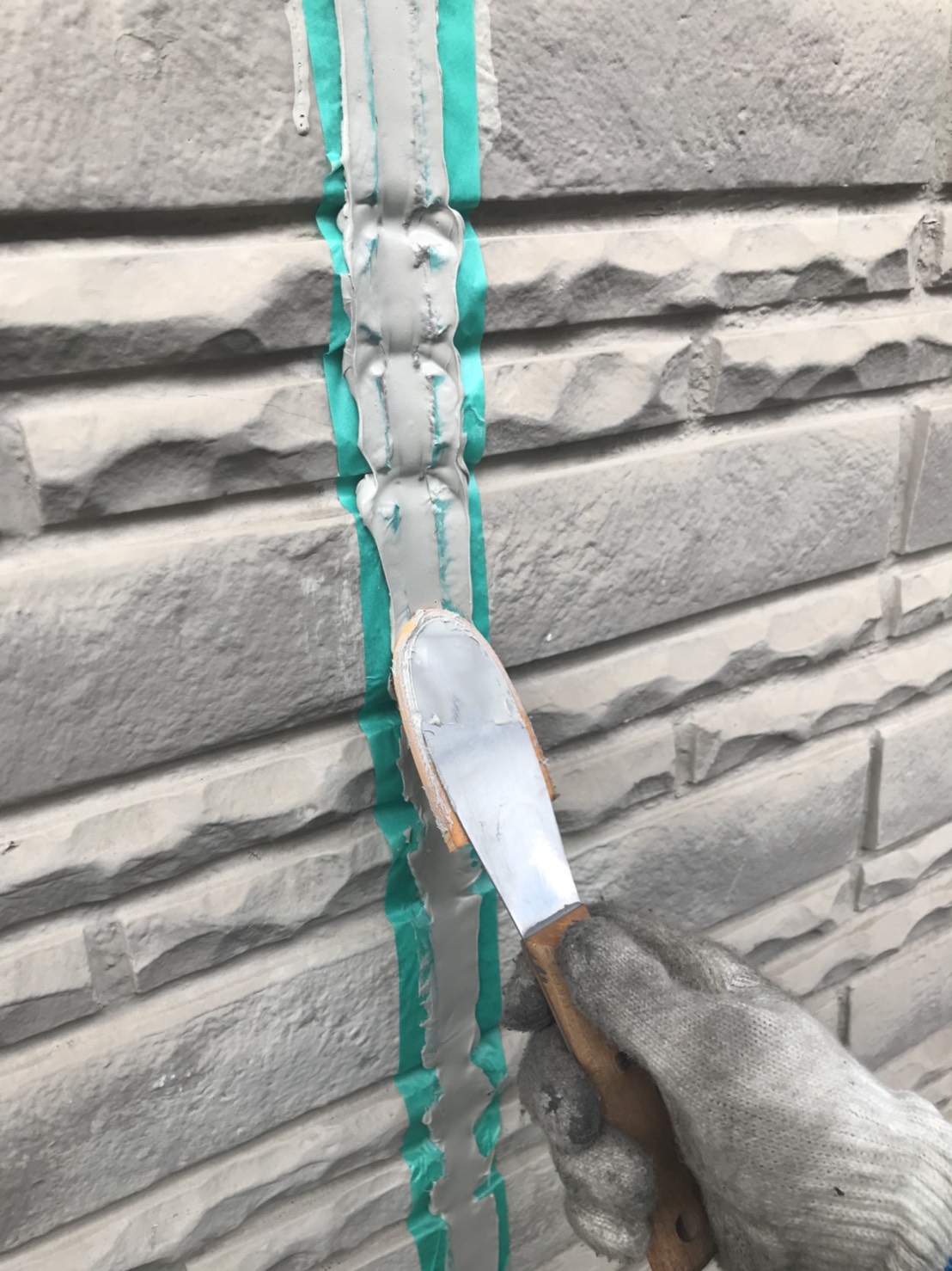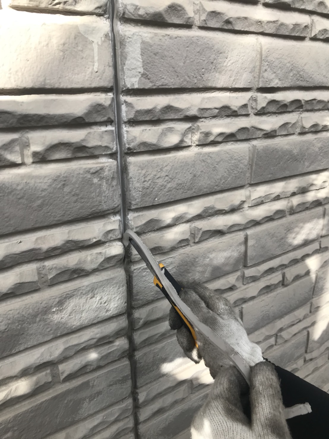 高圧洗浄後にシーリングの補修(打替え)を行います。