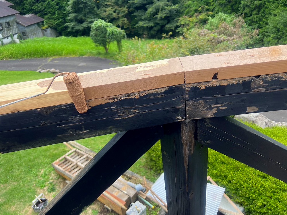 新規木部は塗料が吸い込み、仕上りにムラが出てしまうため吸込み止め用に下塗りを行うのがポイントです。