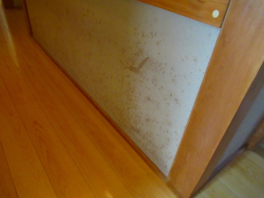 内壁の聚楽(じゅらく)壁ですが調湿機能の低下により湿気によるカビが全体に発生している状態でした。