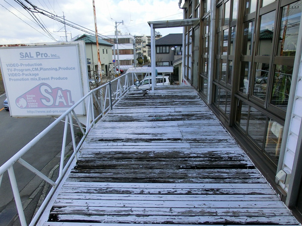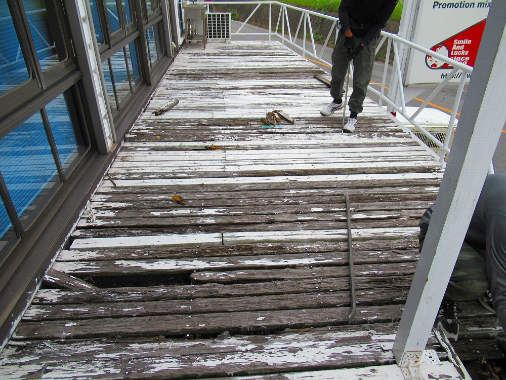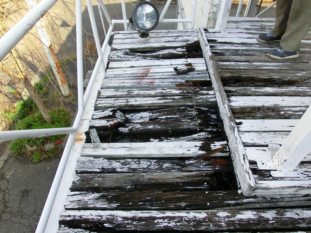 また外部デッキも木で作成されており、木全体が腐食しており歩くと穴が開きとても危険な状態でした。