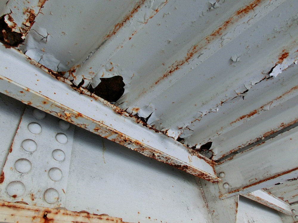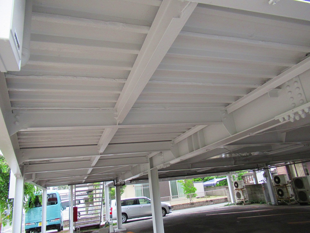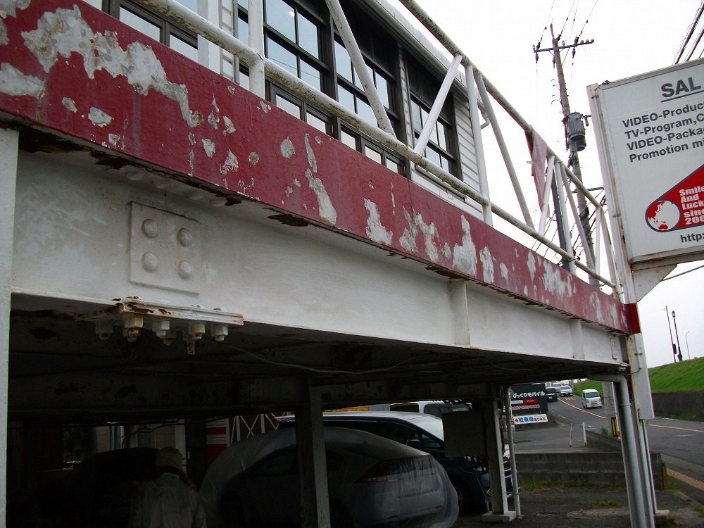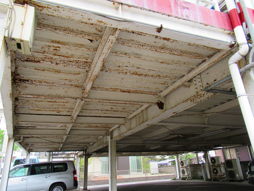 駐車場鉄骨や鉄部全般がかなり錆びており、錆びの影響から鉄部に穴が空いている箇所も多く見受けられる状態でした。