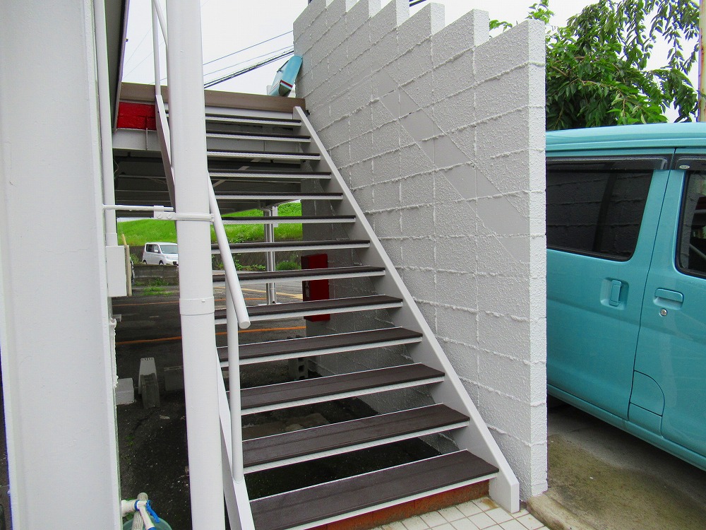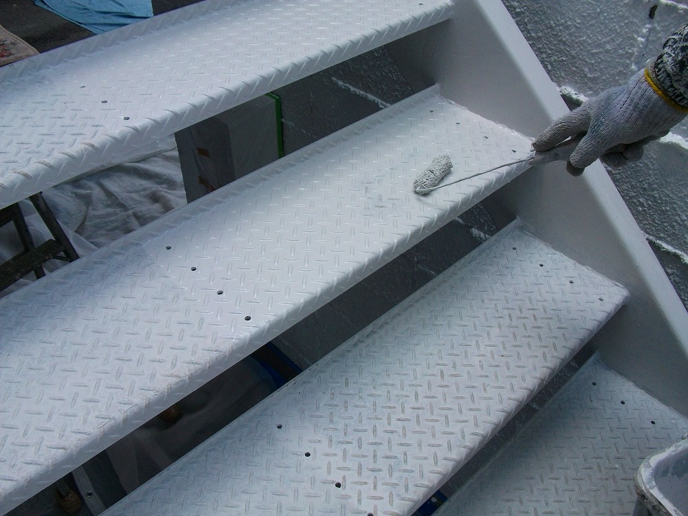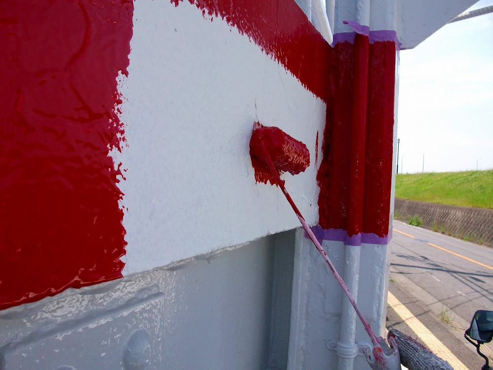 サルプロ様は川沿いにあり、鉄部が傷みやすい環境でしたので今回の塗装は普段よりもかなり錆びに強い塗料をご提案し、塗装させていただきました。