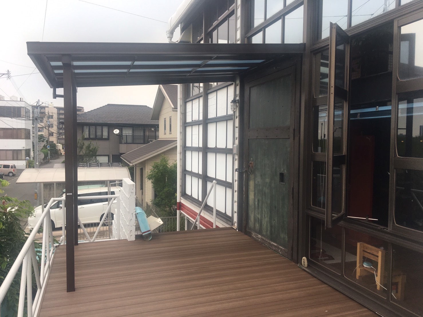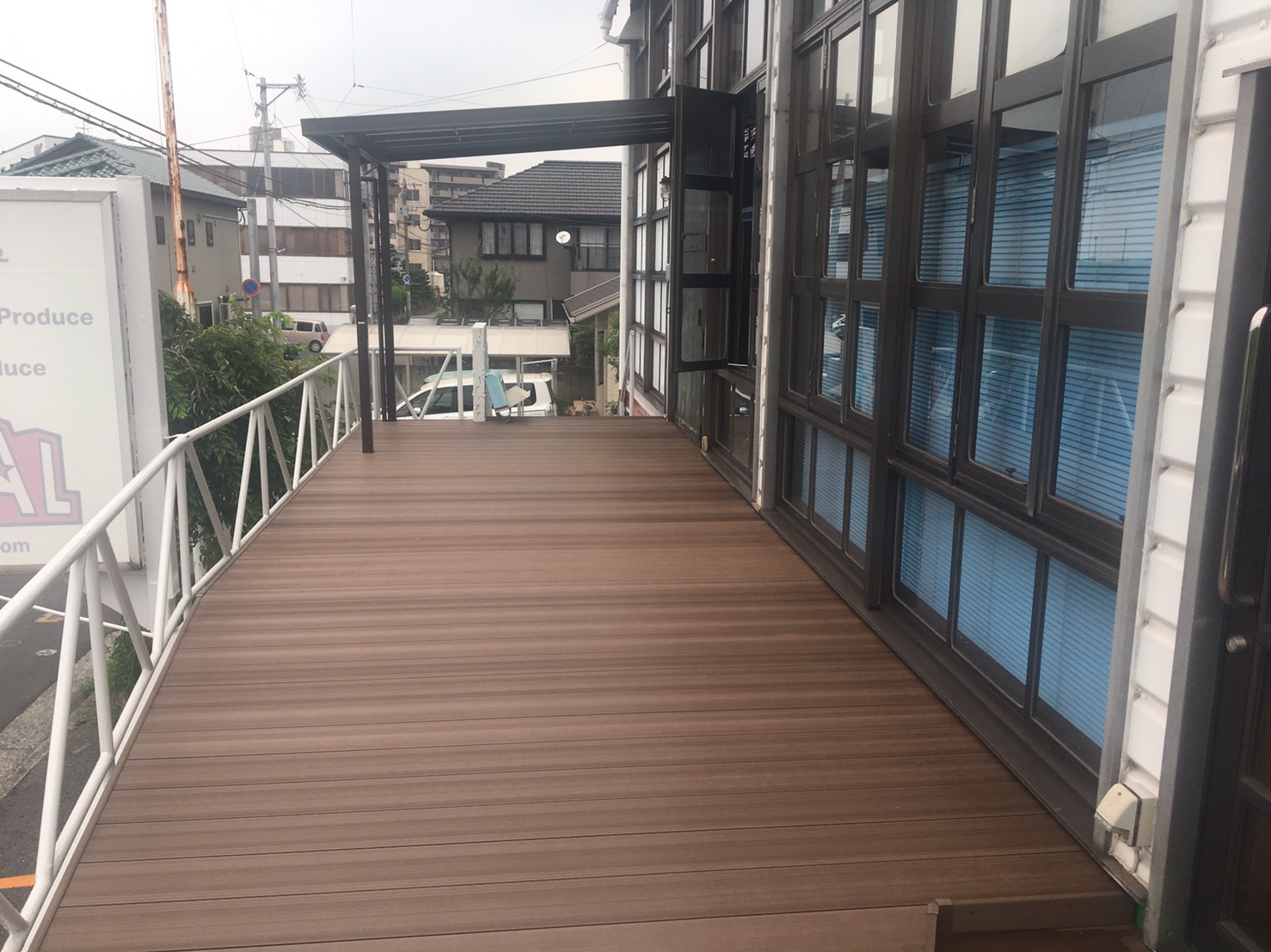 外部のエクステリア工事も色々とご提案させていただき、流行りの樹脂製デッキ、テラスを取付けさせていただきました。