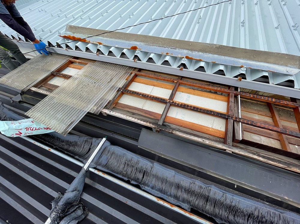 だるま製麵所 屋根波板 取替え工事を行いました