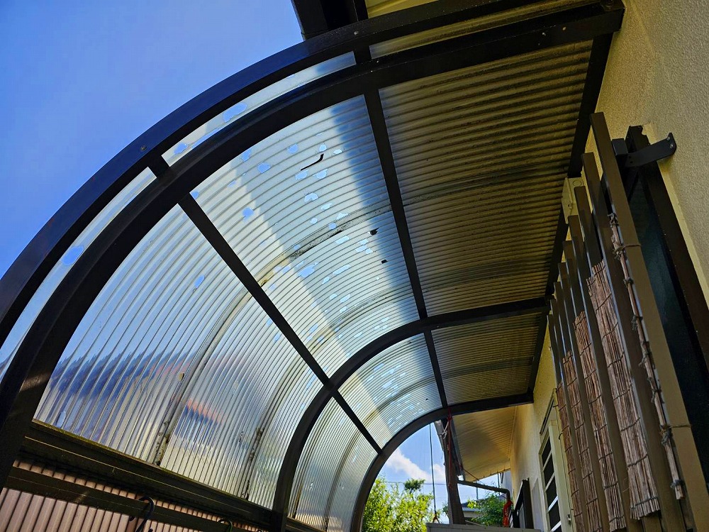 今回は『高い衝撃強度・優れた耐候性』を持ったポリカーボネート製の波板に取替えさせていただきました。