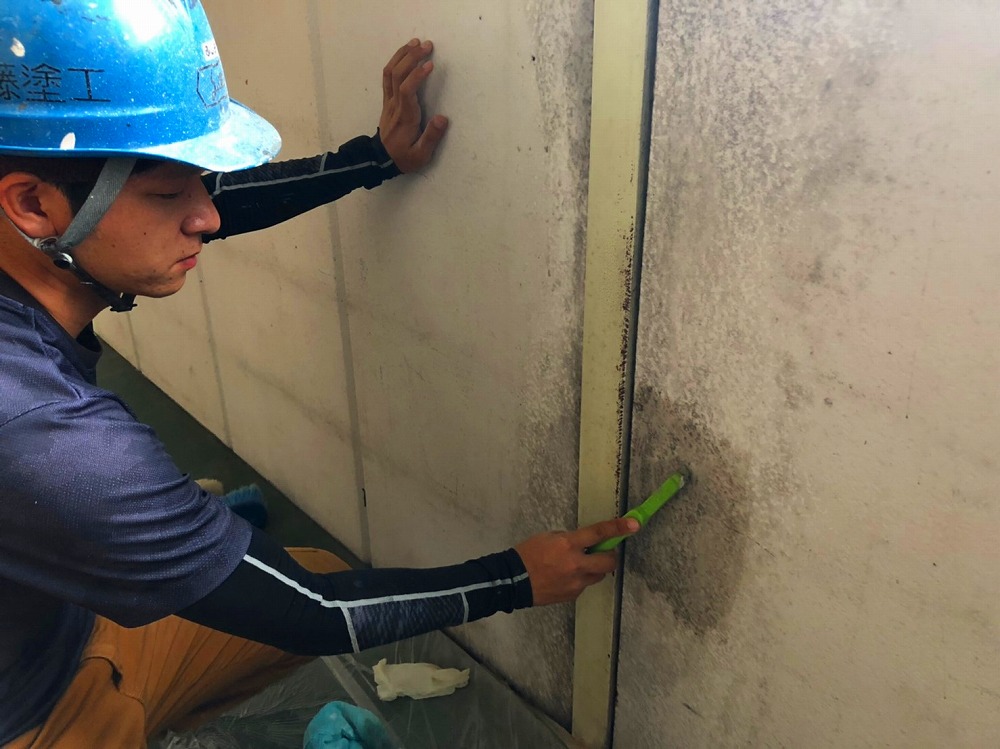 応急処置ではありますが、今回は塗装でカビを封じる工法を選定しました。