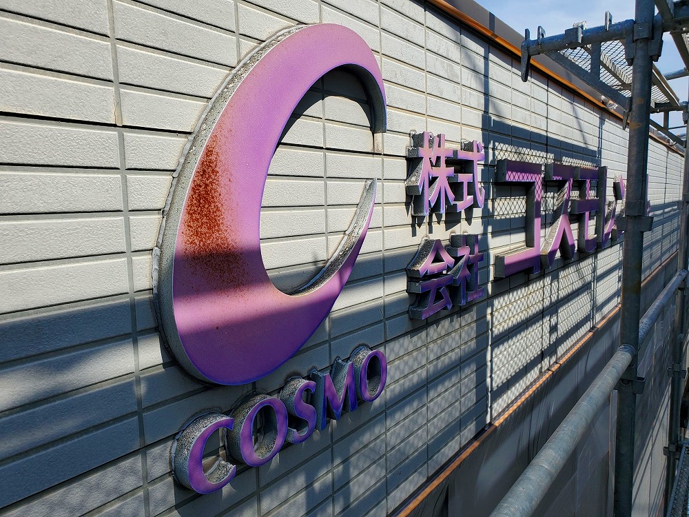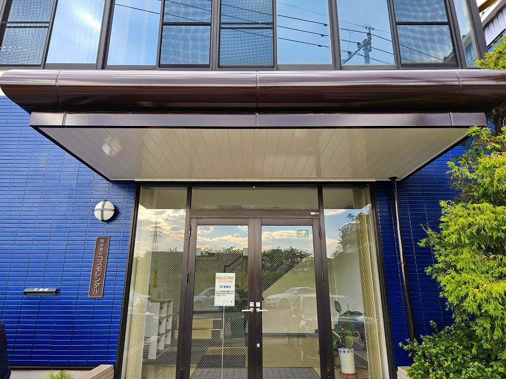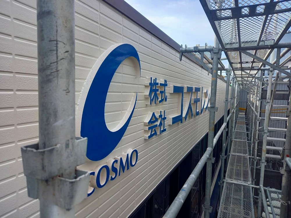コスモレンタル 外壁塗装・文字看板塗装・鉄部塗装等 改修工事を行いました
