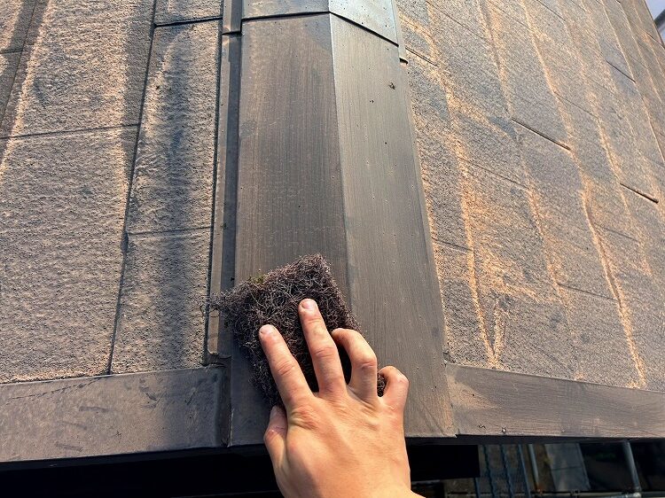 屋根材のコロニアルが風雨劣化やチョーキング現象とそれなりに傷んでいる状態でした。
