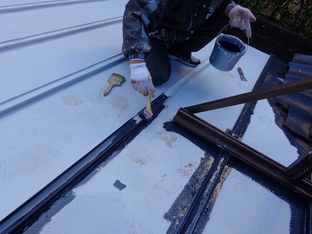 屋根材瓦棒の塗膜劣化箇所から水が浸入したことによりサビが発生している状態でした。