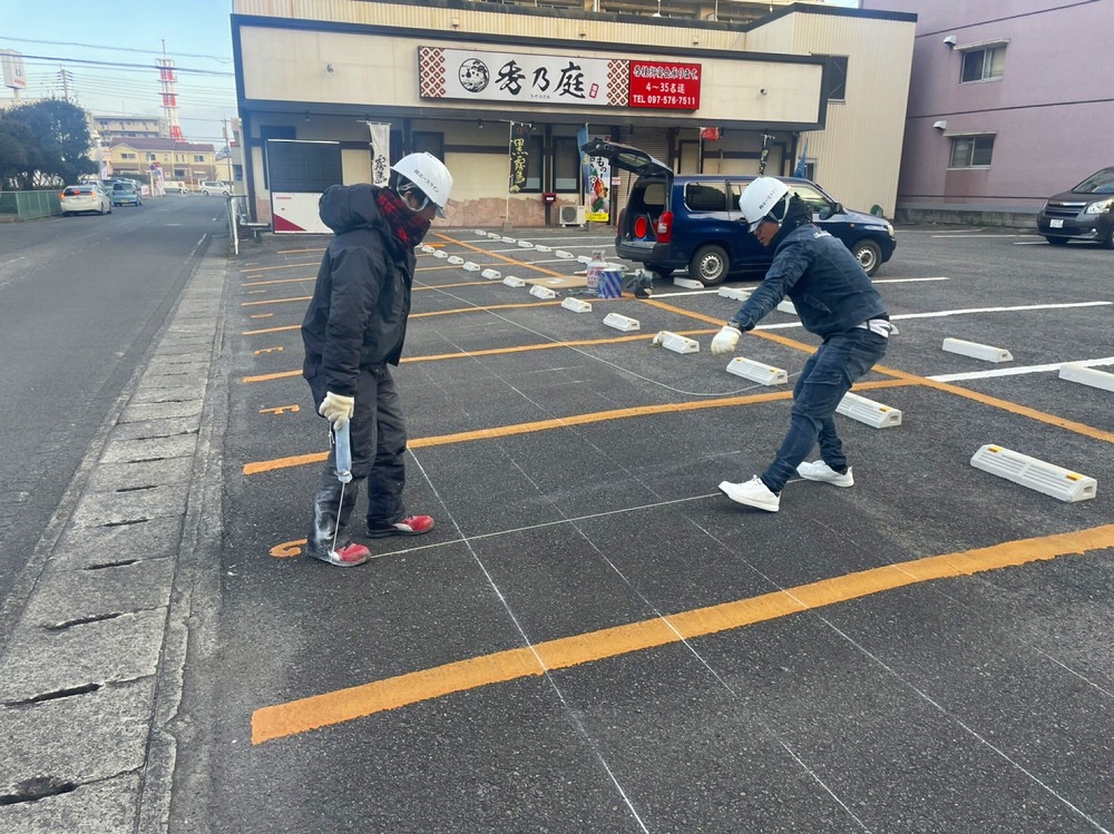 秀乃庭 文字引き 駐車場舗装工事を行いました