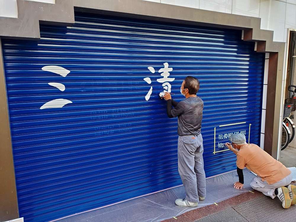 クラブ三清 シャッター塗装・シャッター文字書き工事を行いました