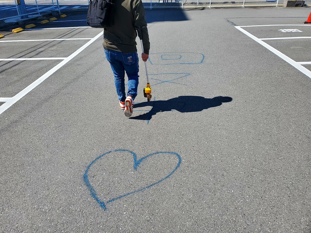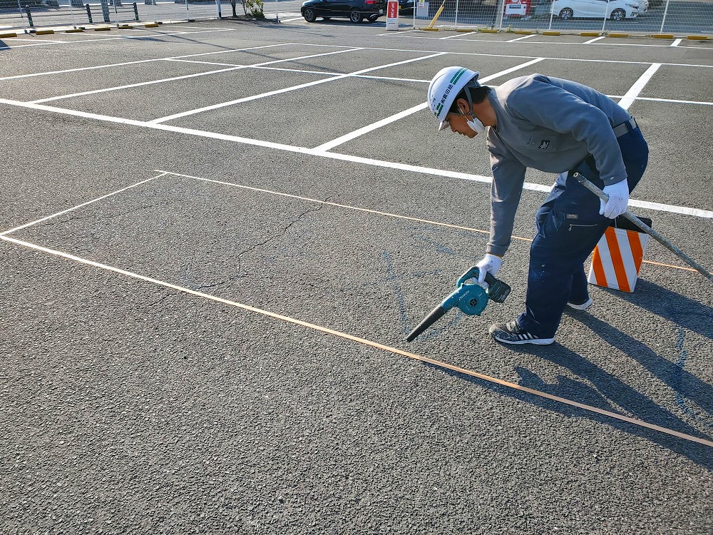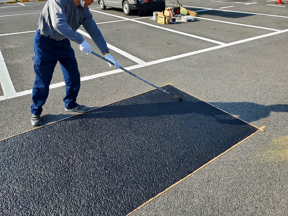 舗装専用塗材にて塗装していますが、どうしてもアスファルト舗装の色とは差が出てしまいます。