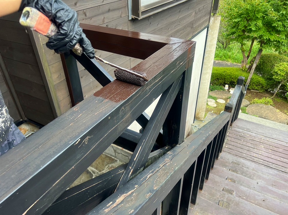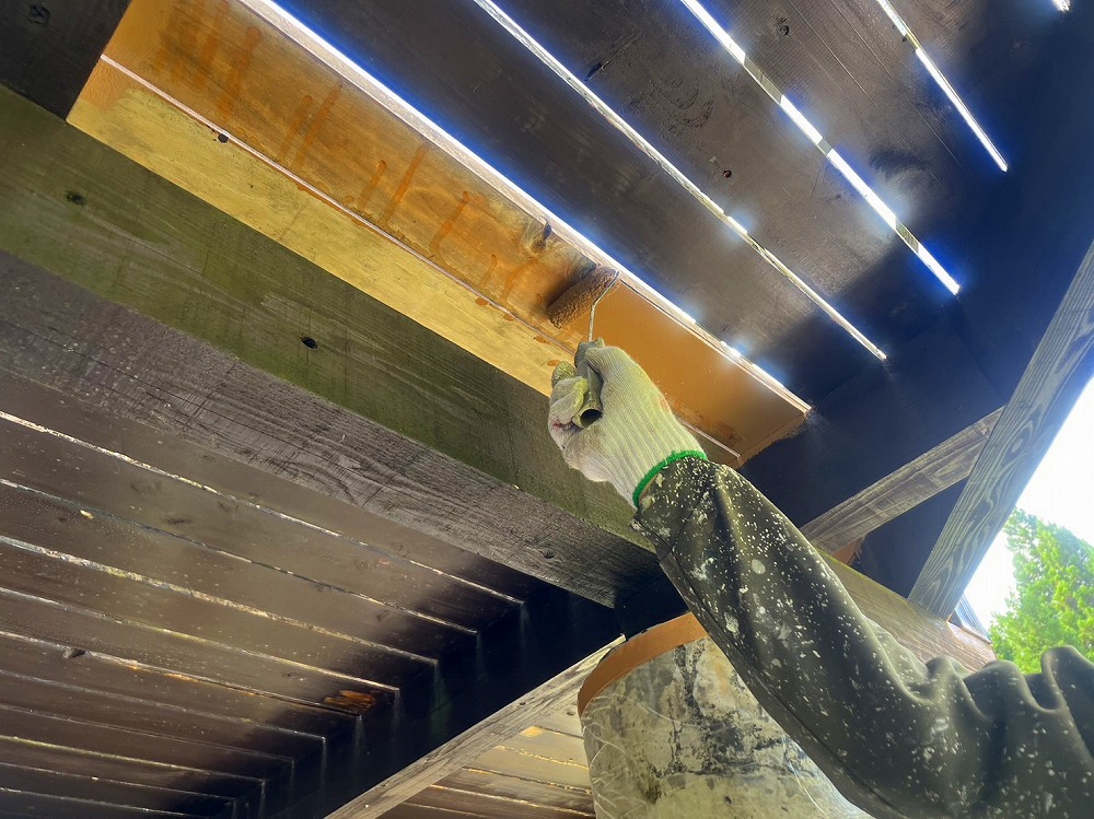 新規木部は塗料が吸い込み、仕上りにムラが出てしまうため吸込み止め用に下塗りを行うのがポイントです。