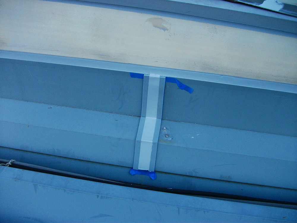屋根折板との接合部部の板金も凹んで水が溜まっていたり、接合部が劣化していたりとこちらも漏水原因でした。